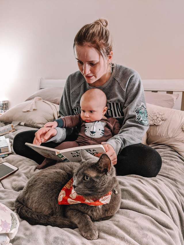 ▼Jeannie懷孕後,家裡人都很好奇貓咪們對小主人會有什麼反應,大家都覺得Grace一定對小寶寶毫無興趣。剛開始確實是這樣的,牠雖然好奇,但離得遠遠的,但6週後一切都改變了。