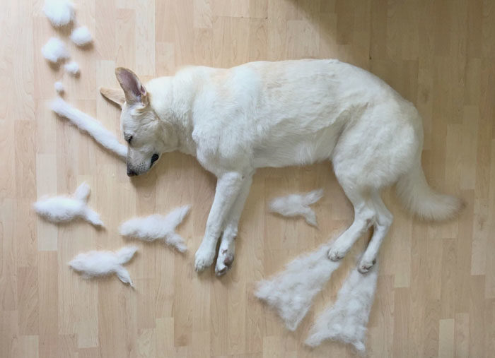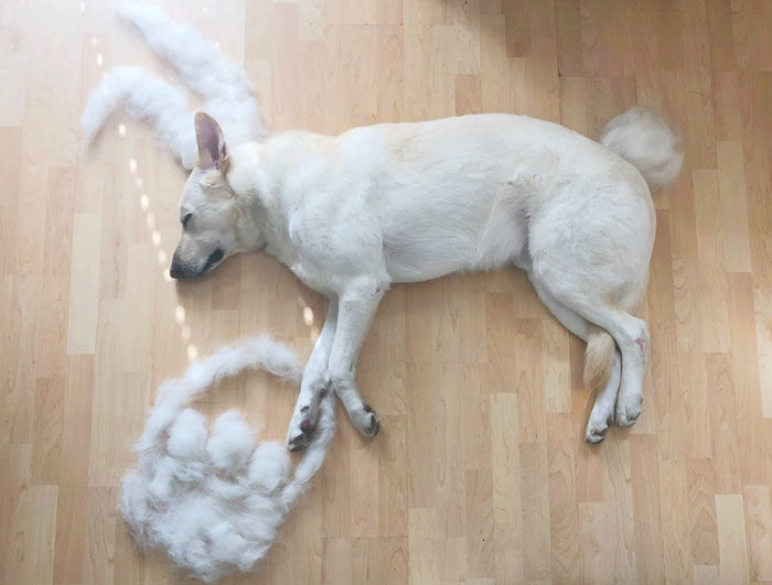 2020年04月13日又到了春暖花開、萬物復蘇的季節,家中的毛孩也開始換毛啦~狗狗狂掉毛是很多飼主最大的煩惱,國外網友Rachel Fromearth也是一樣。她養了一隻萌萌的牧羊犬,這隻狗狗因為身體不太好,經常會掉毛。有一天Rachel幫狗狗清理掉落的毛毛時,突然決定用它們做點什麼,為生活增添一些樂趣~