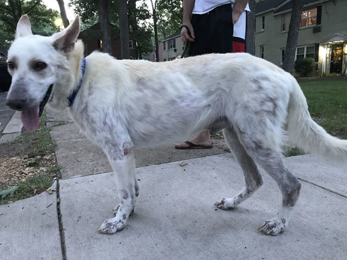 ▼Rachel表示,自家的狗狗有心絲蟲問題,沒被領養的時候身體非常差,經常會掉毛。