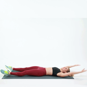 ▼1. 仰卧,頭部略微抬高,雙腿水平伸直,不要接觸地面;雙臂伸直,身體呈「一」字型;抬起雙臂向前伸出,肩部離開地面,雙腿向上抬起,雙手觸摸小腿;在最高點稍停片刻,向下還原到起始動物。呼氣時坐起,吸氣時還原。做2組,每組堅持30秒,組間休息20秒。