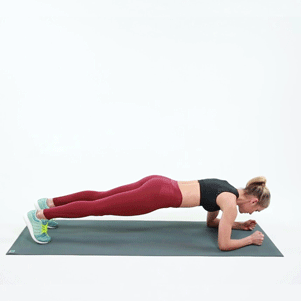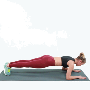 ▼7. 俯身,小臂支撐,臀部向上抬起,腰背挺直。做2組,每組堅持30秒,組間休息20秒。