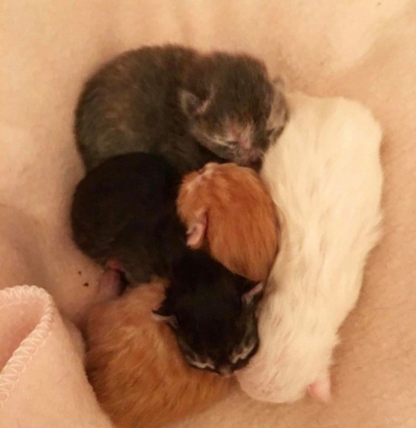 ▼遇到大雷雨的貓媽媽,不得已只能將小貓寶貝們往樹叢裡塞來保護牠們,當地屋主發現後,擔心這一窩貓咪們的在雷雨中的安全,便聯絡了動物救援團體Sparkle Cat Rescue。救援團體的志工凱莉(Sarah Kelly)即時聯絡到了願意收留這一窩貓的寄養家庭。