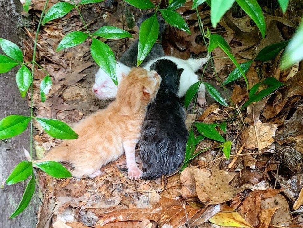 ▼這是與時間在賽跑的過程,因為小貓咪們絕不能淋到雨著涼,他們翻遍附近矮木叢,總算找著小喵咪們,相較於渾身被雨淋濕透的貓媽媽,小貓們的狀況被照顧得相當好,他們才發現,原來貓媽媽蜷曲著身體將牠的小寶貝們圍得好好的,自己承受了大部分的雨水,所以牠才會全身濕漉漉。