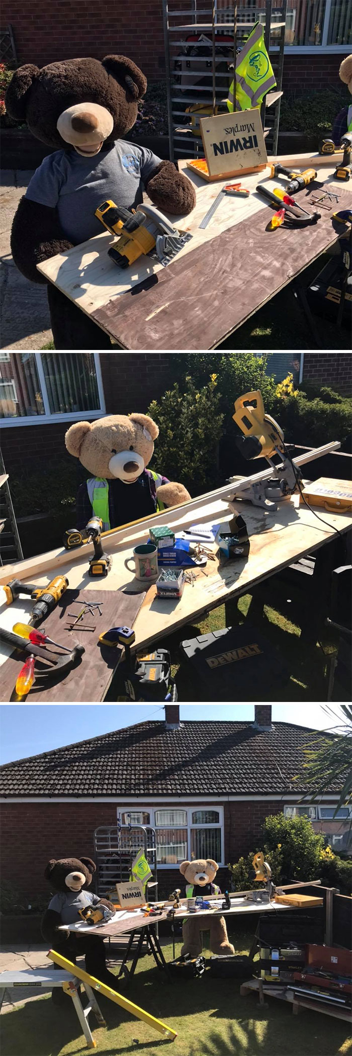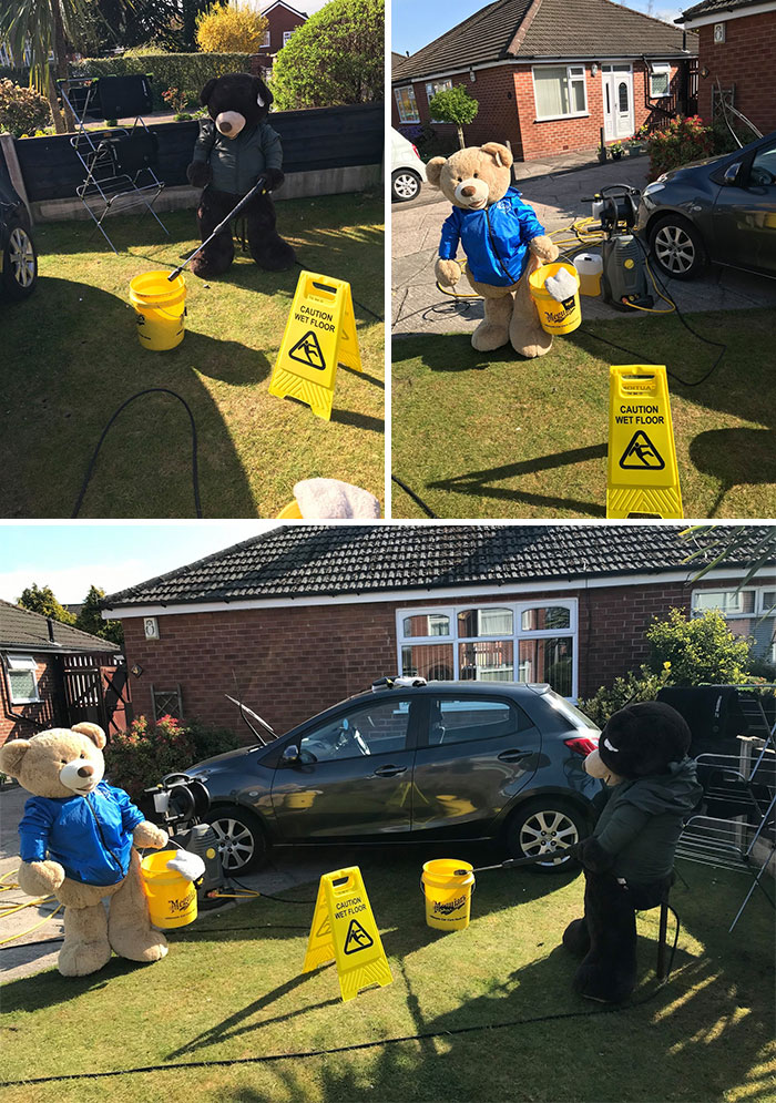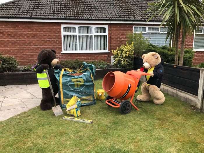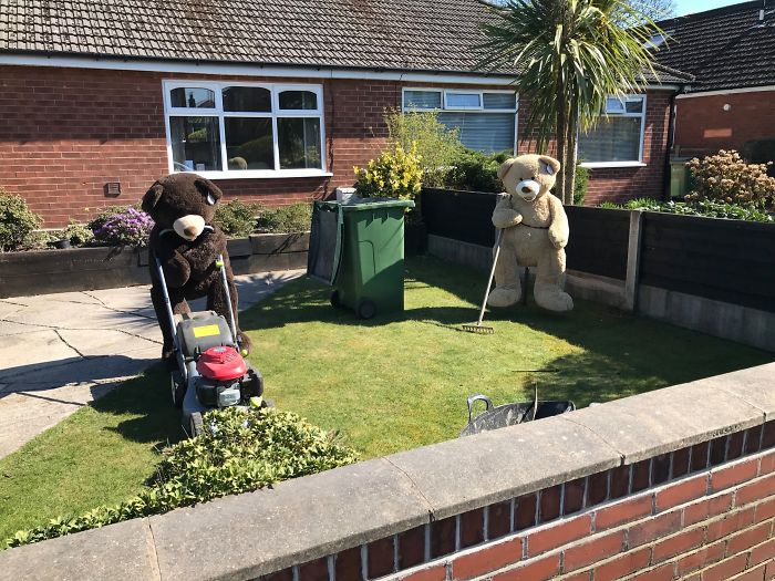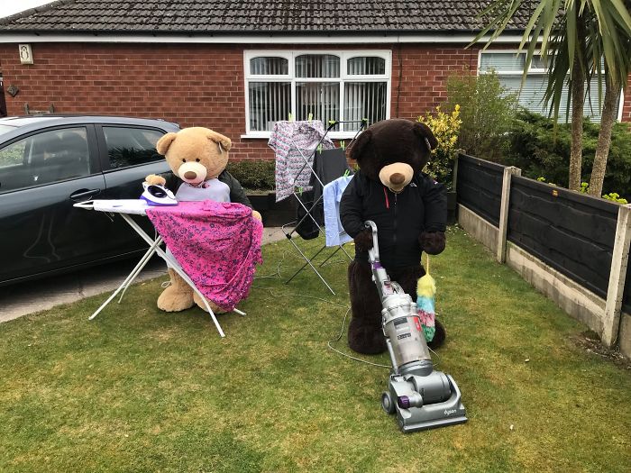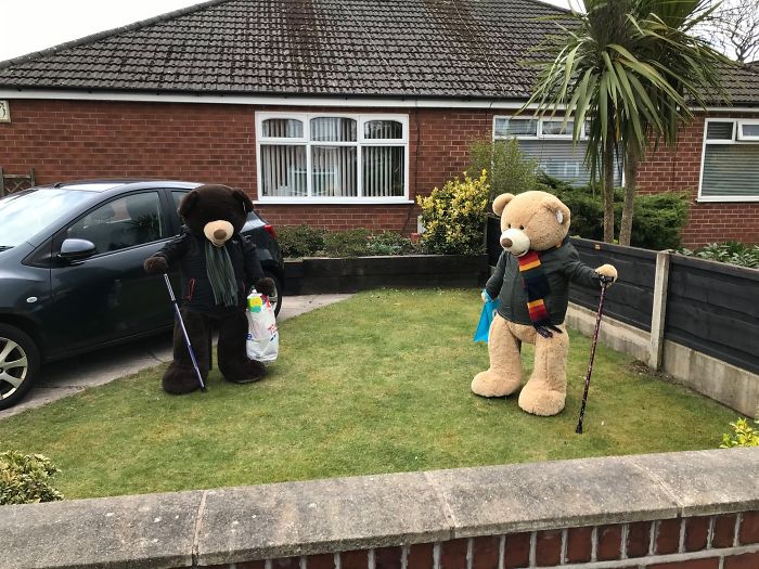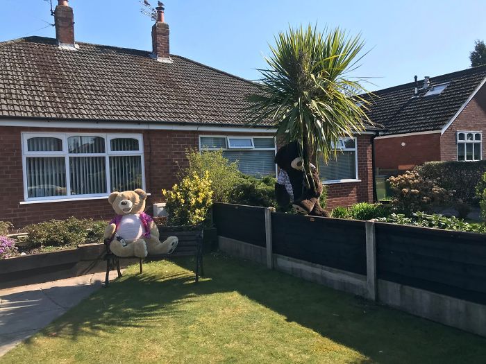 將這對泰迪熊兄弟安置在院子中的人表示,鄰居們都很喜歡這個主意。這段時間大家都待在家裡,正好可以通過這樣的方式增進鄰里關係。因為這兩隻泰迪熊,這個社區變得超和諧,大家感受到了滿滿的療癒力~