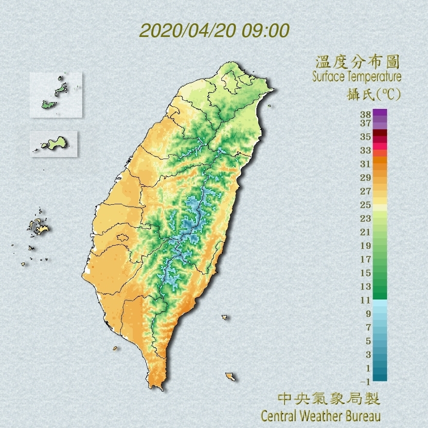 2020年04月20日這幾日來雖然天氣回暖變熱非常多,但據中央氣象局報導,21日起另一鋒面會通過,東北季風增強,所以北部、東半部地區及中部山區會有局部短暫陣雨,其他地區為多雲,有專家分析:21日下午起,氣溫會逐日漸降,24日會降至最低溫,最低溫會來到15、16度;水氣也多,天氣會轉為「濕涼」。