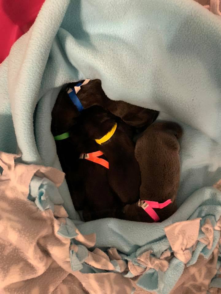 ▼後來「No Dog Left Behind」又救了5隻出生不久的鬥牛犬寶寶,牠們沒有媽媽,需要工作人員全方位照顧。小狗每2個小孩要喝一次奶,晝夜不停。工作人員每次給牠們餵奶都要花45分鐘左右。