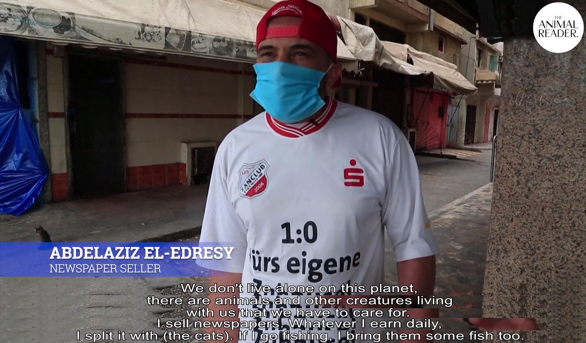 ▼Abdelaziz表示人類不是單獨存活在這顆星球上的,地球上還有許多生物與我們一起共存,所以我們也要關懷牠們。以賣報紙維生的他,表示每天會將賣報紙所得拿來買貓咪的食物分給浪浪們吃,或是他去釣魚的話也會分給牠們。