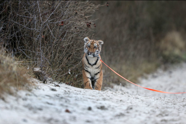 ▼小老虎需要大量的運動,Farell和老公每天都會帶牠外出散步,陪牠看不同的風景。