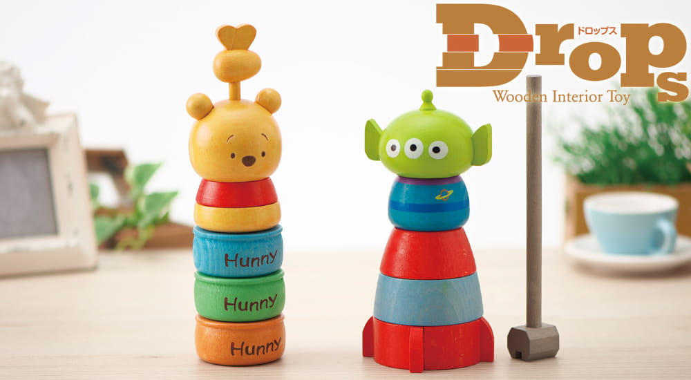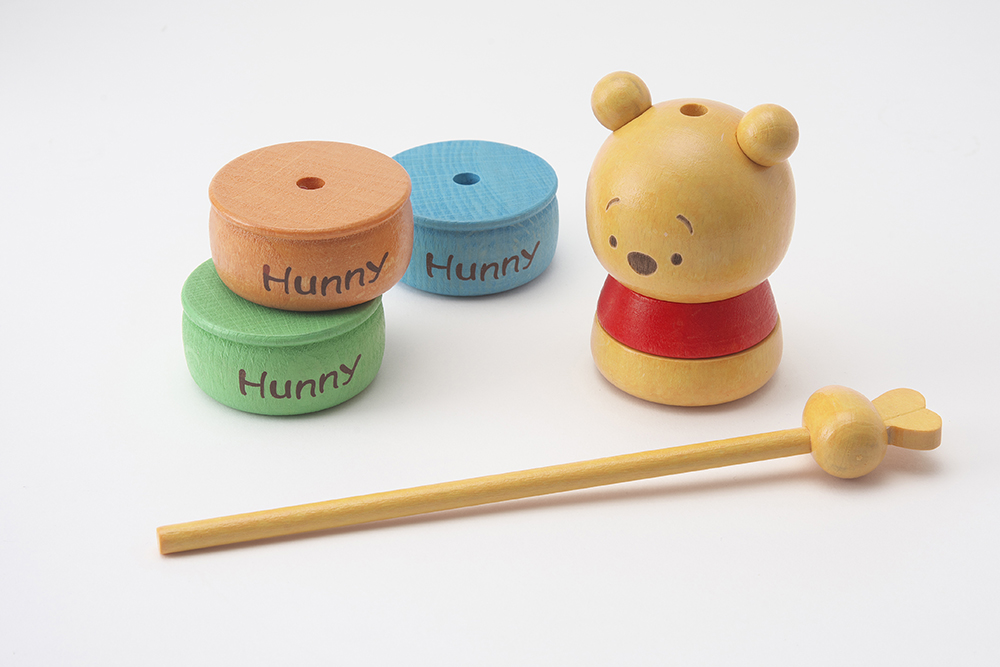 ▼Yanoman推出的以兩款迪士尼經典角色「小熊維尼」和「三眼仔」的「敲敲樂積木組」,兩款都是以木頭為材料製成,拿在手上可以感受一下木頭獨特的厚實、舒服的質感。