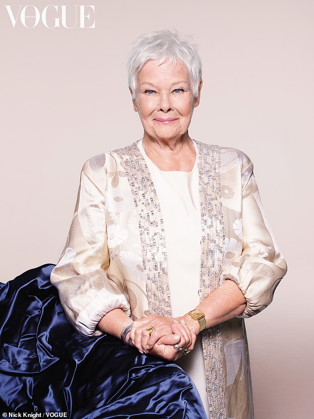 ▼封面照片上,茱蒂丹契一頭銀白色短髮,臉上雖然有皺紋,但皮膚紅潤有光澤。她穿著Dolce & Gabbana粉花上衣,氣質非常優雅。