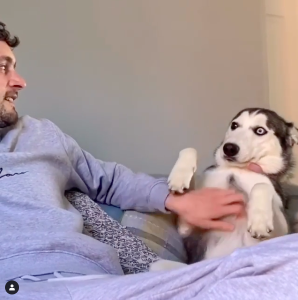 哈士奇求摸肚肚…爽到「重心不穩」被把拔笑 牠「秒變臉森77」:槓嘛笑人家啦~