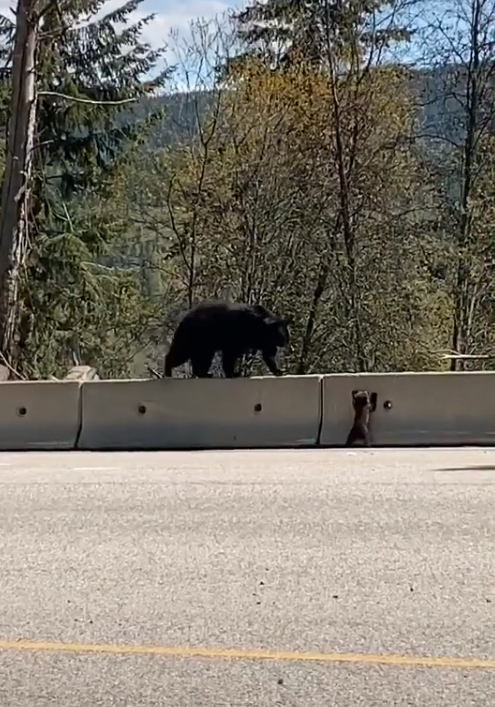 @wandershuks Wait for me Mama! Rossland, BC, Canada #mamabear #babybear #cubs #fyp #foryoupage #bearscrossing