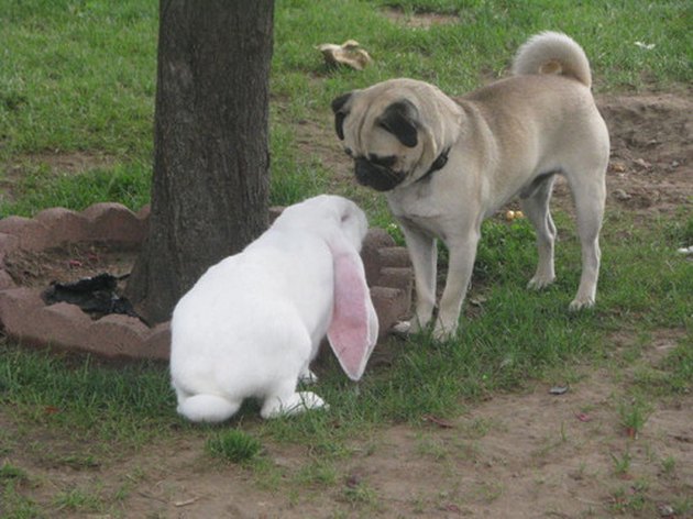 ▼兔兔和狗狗是怎麼交朋友的?