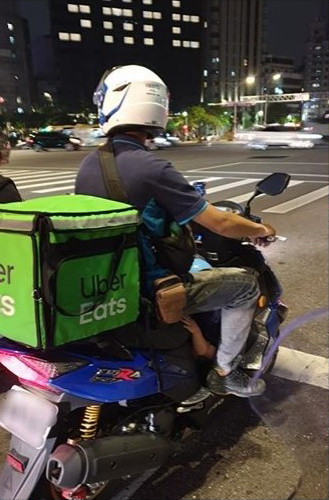 小孩沒人帶… 鐵工父「載兒跑外送」 3萬網友感動:真男人!