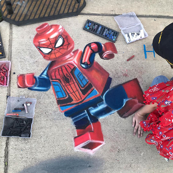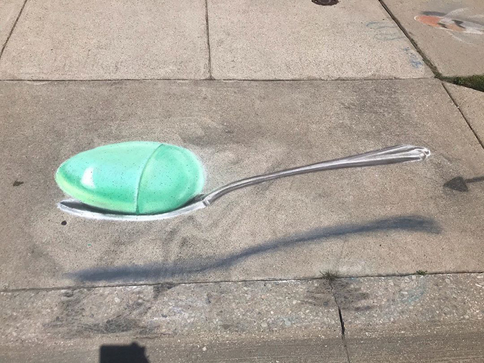 ▼鄰居們都很喜歡Jan和女兒的作品,經常詢問她們什麼時候有新作,還有人想出錢請她們在社區裡畫畫,但Jan畫粉筆畫並不是為了賺錢,所以鄰居們會送來一些彩色粉筆當禮物,表達對她們的作品的喜愛。
