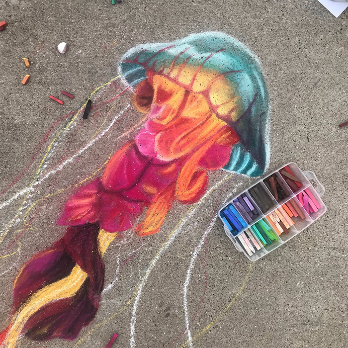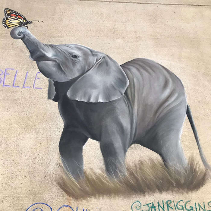 ▼Jan是從5年前開始接觸粉筆畫的,當地舉辦了一場粉筆畫藝術節,她在那裡認識了一位藝術家。對方開玩笑說:「你要做好準備,這會讓你欲罷不能!」Jan果然對粉筆畫著迷了。
