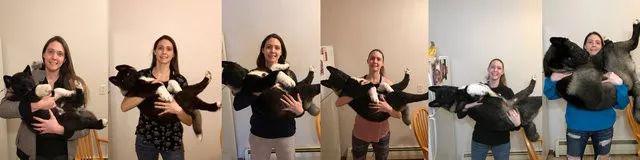 ▼國外一名網友養了一隻秋田寶寶,還給牠取名為「熊熊」。主人每個月都抱著牠拍一張照片,短短3個月過去,熊熊已經18公斤重了。
