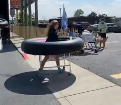 ▼馬里蘭州還沒有完全解封,人們不能到餐廳用餐,餐廳只能提供外送、外帶、得來速。「Fish Tales Bar & Grill」的「碰碰桌」還沒有用上,老闆Donna Harman表示,等餐廳被允許開放戶外座位,她準備將這種桌子給那些需要等位的客人,或者坐在吧台旁的客人用。