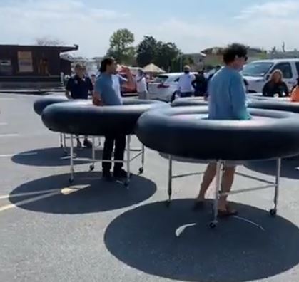 ICYMI: Fish Tales in Ocean City is finding creative ways to keep their customers safe during the pandemic. On Saturday, the team here rolled out these new “social distancing tables,” and they’re hoping they’ll be allowed to make them available to customers soon. pic.twitter.com/HR3UzLHOxO