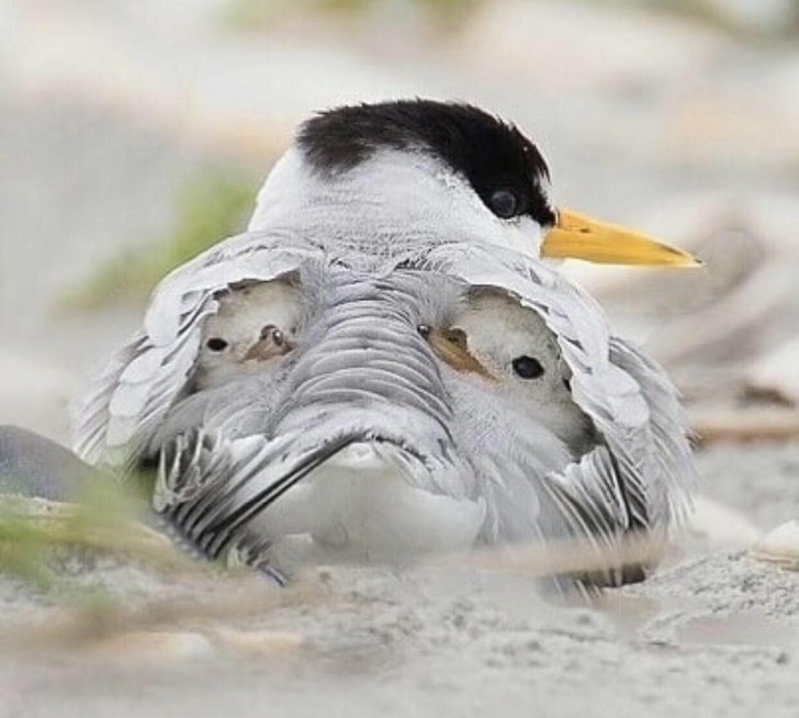 ▼「躲在媽媽的翅膀下,就沒人能找到我們啦!」