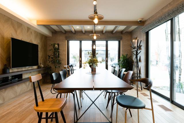 ▼這棟透天是自建房,1樓的採光非常好。1樓的餐廳也是客廳,擁有大大的落地窗。兩張桌子拼在一起,足夠一大家人和樂融融用餐。