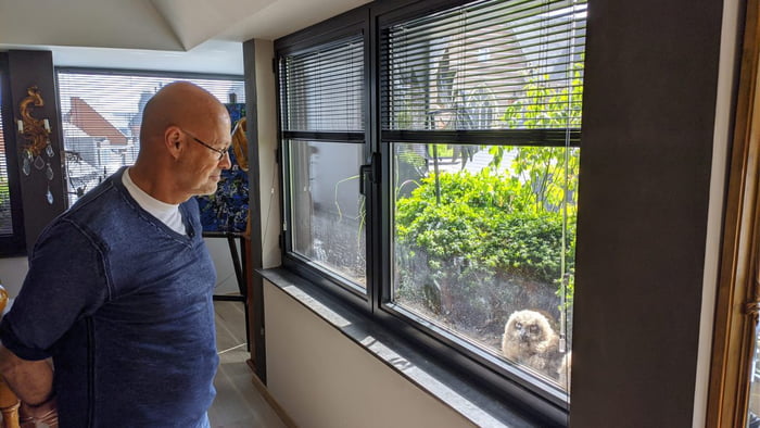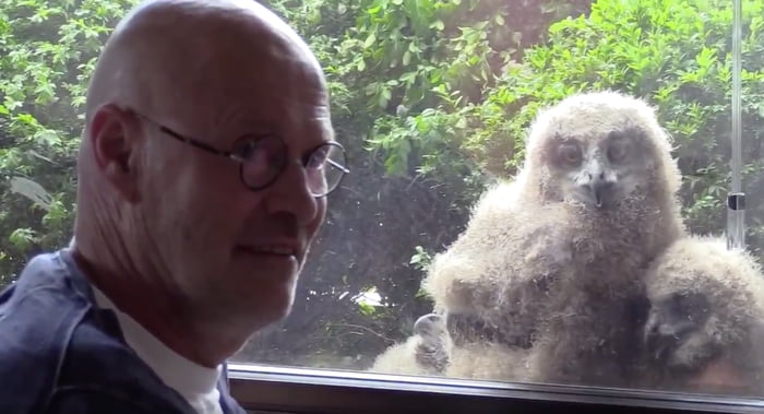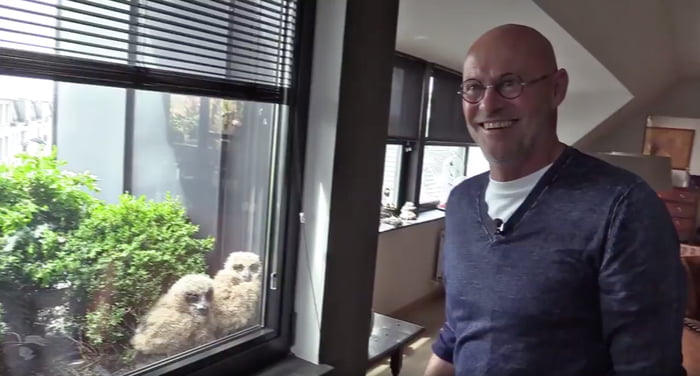 2020年05月28日最近這段時間比利時男子Jos Baart的生活非常奇妙,因為有一隻鵰鴞在牠的窗外築巢,並孵出了3隻小鳥。小鳥們每天在窗外徘徊,還會跟著Baart一起看電視,那畫面非常有趣。