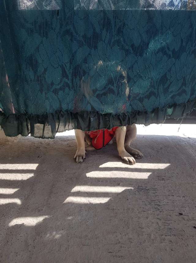 ▼Sonic每次都躲在蕾絲窗簾後面,牠喜歡看家人到處找牠的慌張模樣。Junior說:「我們叫牠的時候牠不會動,只是盯著我們看,牠以為我們看不到牠。」