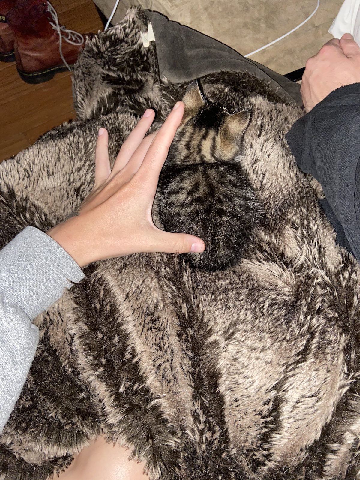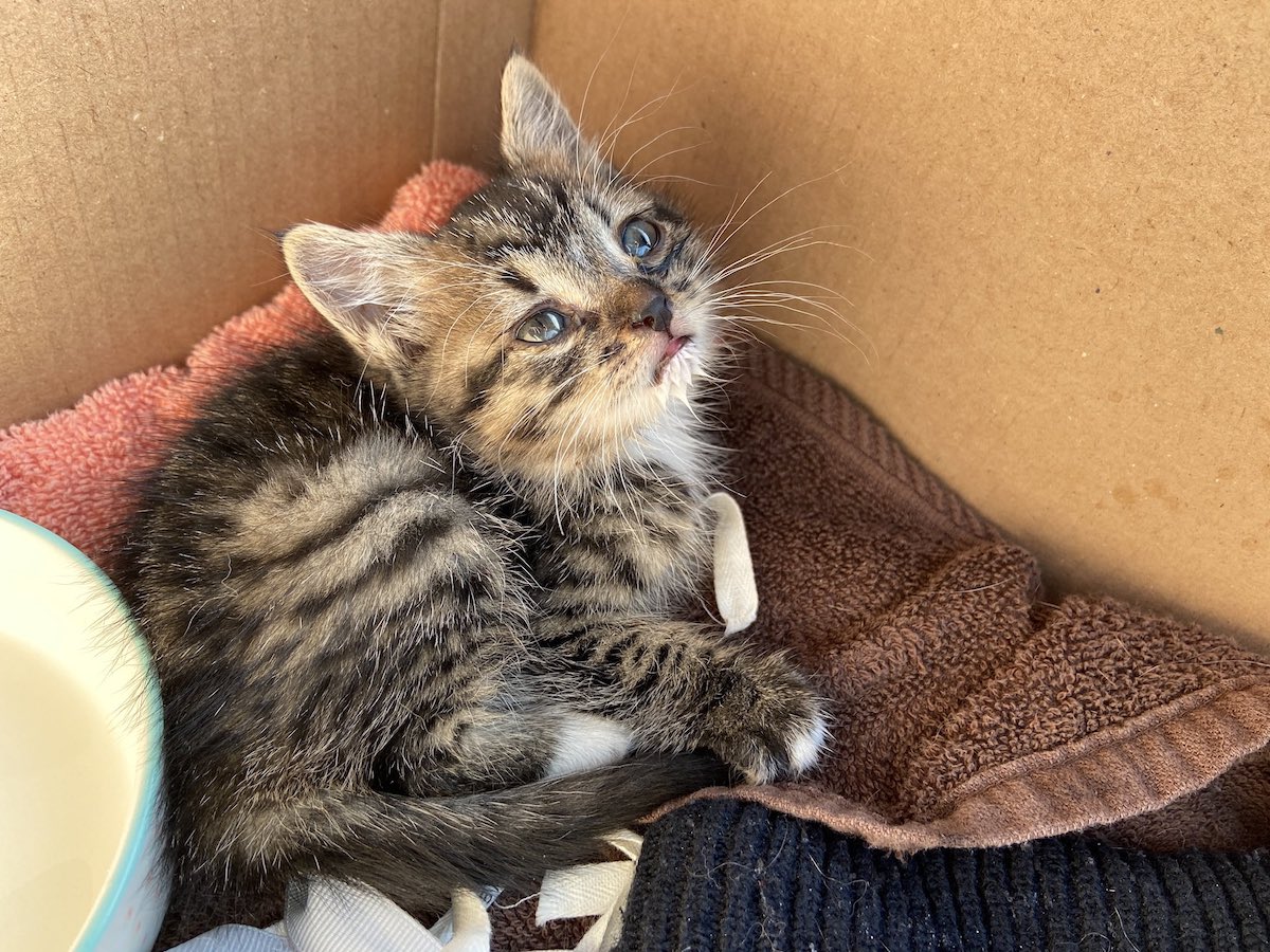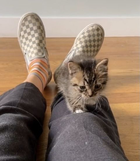 ▼外面正下著傾盆大雨,於是他們將小貓咪身上擦乾,並給小貓咪提供了水和溫暖的床,佩蒂也很懂得撒嬌,攀上克蕾的腳,讓克蕾感到很開心。因為克蕾的祖母上週日剛離開人世,於是他們依祖母的名字將小貓咪取名為「佩蒂」(Patty),經獸醫預估已經有4、5週大,是隻健康的小男生。