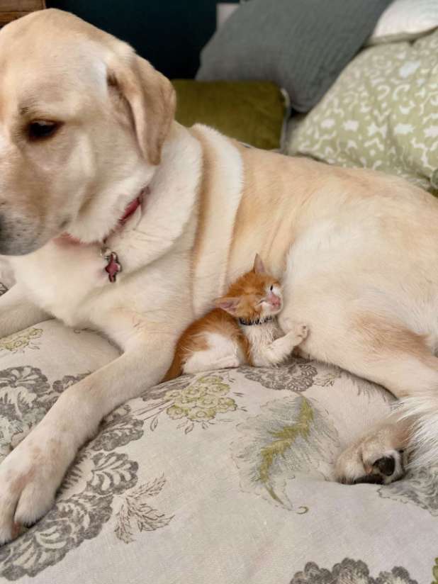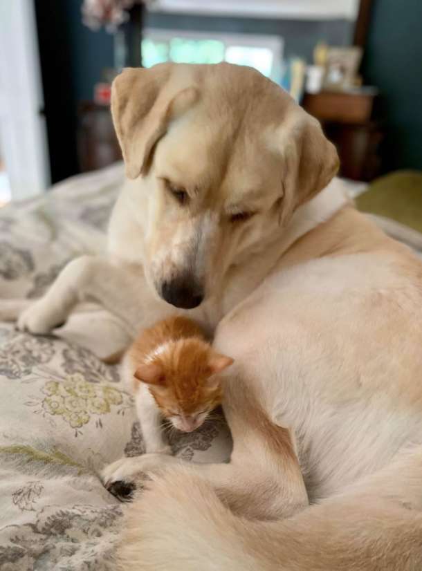 超有愛!中途汪遇到「孤兒小奶貓」超憐惜 一手攬過來:我照顧你們♡