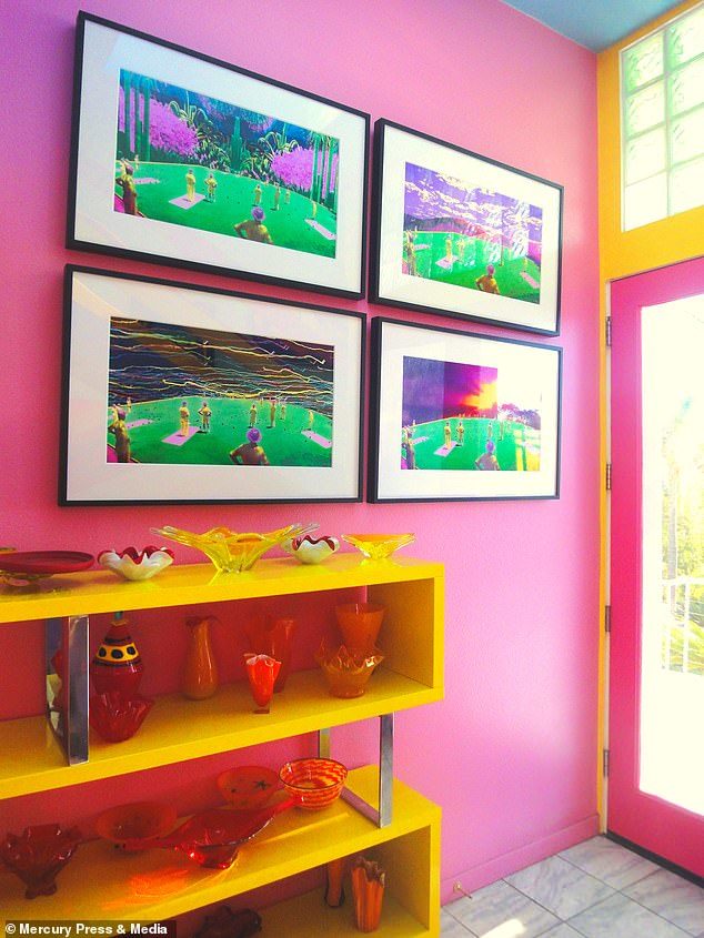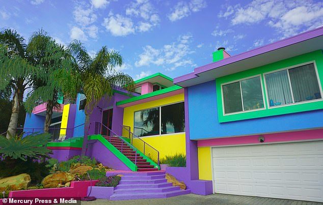 ▼Jane的豪宅外觀漆有9種顏色,內部的顏色更是有十幾種。當地陽光比較強烈,她每年都要拿出5千美元(約台幣15萬元)重新上漆,防止褪色。