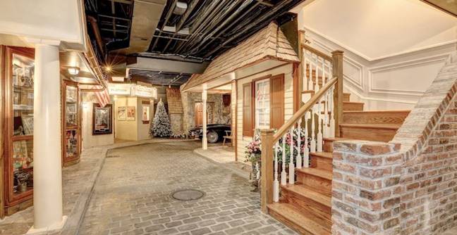 ▼最讓人驚喜的是這棟豪宅地下室的小鎮模型,從照片中能看到鋪著鵝卵石的街道、沿街停著幾輛汽車。