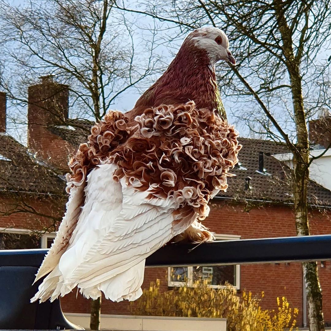 2020年06月03日鴿子是一種很常見的鳥類,大多數鴿子都有柔順的藍色和綠色羽毛,看起來優雅又漂亮。但世界上有一種叫Frillback的鴿子,牠們又名「芙蓉鴿」,外觀跟普通的鴿子差別很大。芙蓉鴿的翅膀上有Q萌的捲毛,讓整體造型顯得更可愛。