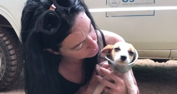 ▼Jenny和Jim熱愛動物,平時不僅會拯救黑猩猩,也會救治其他動物。Jim是一名獸醫,在他的治療下,小狗逐漸恢復健康。他們給小狗取名為Snafu。