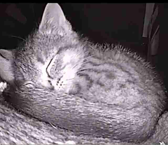 ▼之後Mama又生了第二胎,因為擔心貓咪們的狀況,卡桑諾之後又在貓屋裡架設起監視攝影機,來確保貓咪的安全,還因此照到了貓咪超萌的睡姿照,牠臉上看起來很像正在微笑,滿足的睡臉融化了網友。
