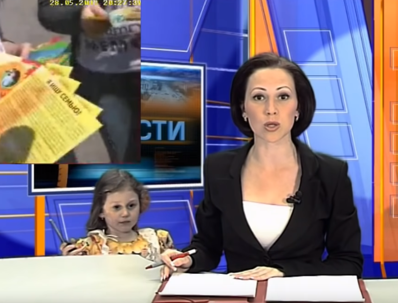▼這位女主播叫Anna Kizilova,在俄羅斯塔吉爾電視台(TaglTV)工作。2012年時,她一臉嚴肅播報新聞期間,女兒Elizaveta竟突然闖入鏡頭中。只見Elizaveta一手拿著手機,用另一手點了點媽媽的手臂。