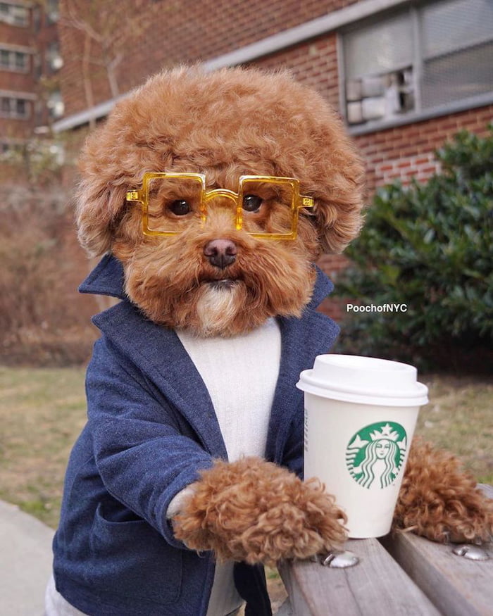 ▼散步的時候買了一杯咖啡,對生活品質有要求的狗狗都會這樣做的,對嗎?