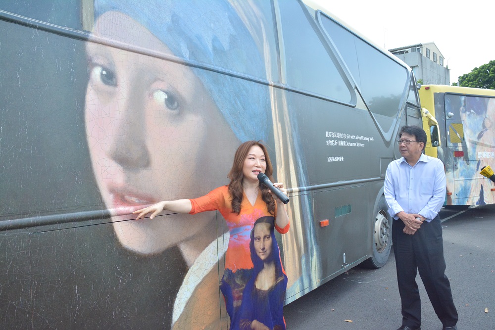 ▼「山不來就我,我來就山」,屏東縣長潘孟安表示,這些世界名畫典藏在各國博物館或美術館,現在縣府讓藝術走出來親近大家,形塑城市美學,同時結合實際在縣內行駛的公車路線,創造話題吸引民眾搭乘,提升乘車率及帶動觀光。