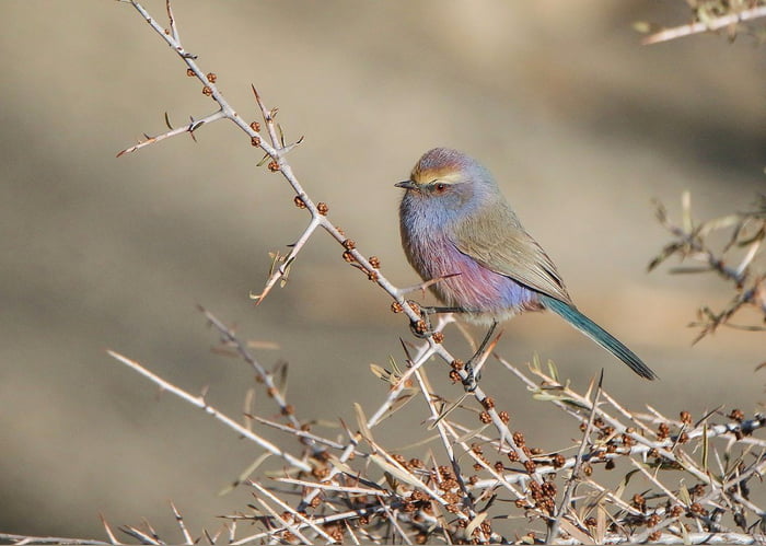 2020年06月10日世界上有很多漂亮的鳥,花彩雀鶯(Lophobasileus sophiae)就是其中之一。牠們的羽毛五彩斑斕,從粉紅色到藍色,再到深紫色,自帶夢幻氣質,讓人聯想到童話故事裡的獨角獸。