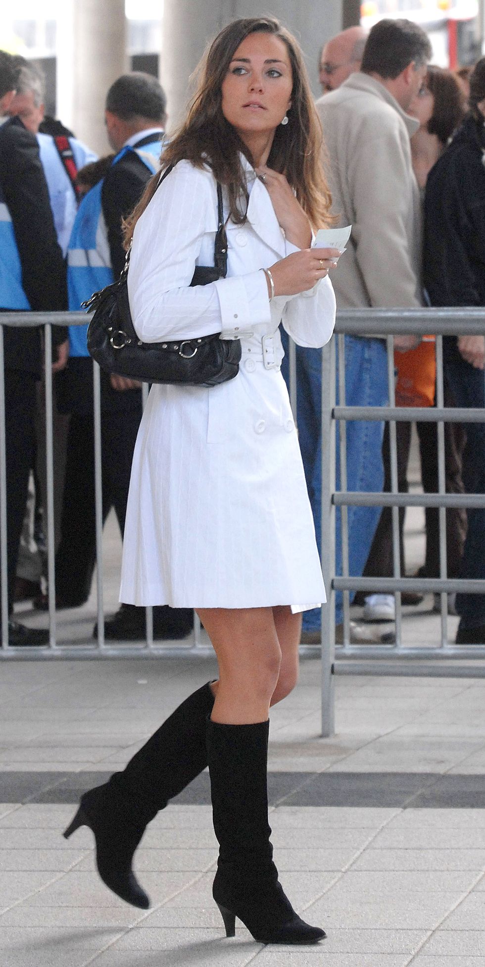 ▼2007年3月16日,凱特在英格蘭格洛斯特郡切爾滕納姆節的最後一天,戴著黑色貝雷帽和佩斯利花紋圍巾。