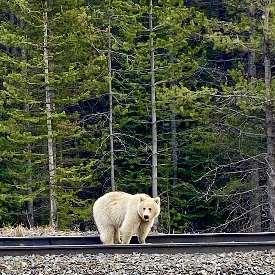 ▼從那之後,又有人在班夫國家公園(Banff National Park)附近拍到這隻白色的灰熊。5月18日時,Bow Valley Network在臉書上分享了一張照片,並請網友們投票給這隻灰熊取名,最後給牠取名為「Nakoda」。