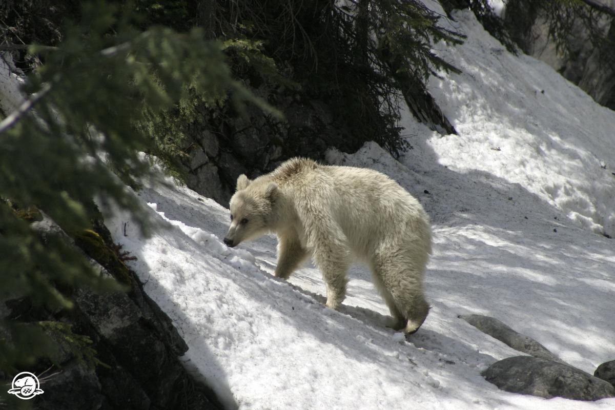 班夫國家公園內大約有56種哺乳動物,灰熊、美洲黑熊也棲息在公園內的森林地區。有些人推測這隻灰熊全身雪白可能是因為白化,但專家認為這可能是基因導致的。雖然牠是灰熊,但看起來更像北極熊呀!