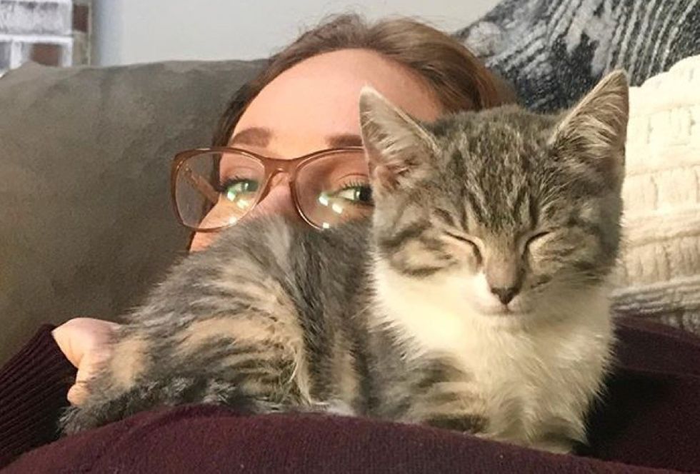 ▼他們給小貓取名為Millie,先帶牠去獸醫院驅蟲,然後開始悉心照顧牠,每隔幾個小時就用奶瓶餵一次奶。為了方便給Millie餵奶,Claire和Kyle上班時也會帶著牠。