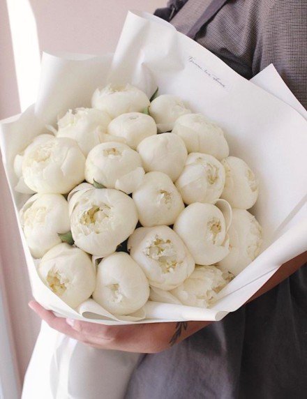 ▼這種花束的芍藥花朵呈球型,圓潤可愛。白色的花苞純潔大氣,粉色的花苞浪漫甜美。這種可愛、淡雅的花非常適合氣質女生,顯得含蓄典雅,不會過於豔麗。