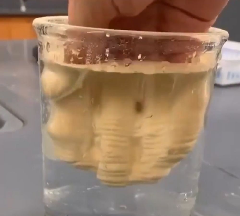 ▼18.這種特別的粉末有疏水的特質,不會溶於水,只會在水表面。
