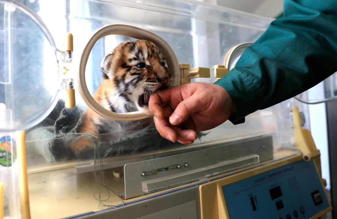 ▼在這50多隻虎寶寶中,有一窩罕見的五胞胎。飼養員細心照顧這些可愛的虎寶寶,每天給牠們餵奶、量體溫、量體重,觀察牠們的一舉一動。這簡直是世界上最棒的工作了!