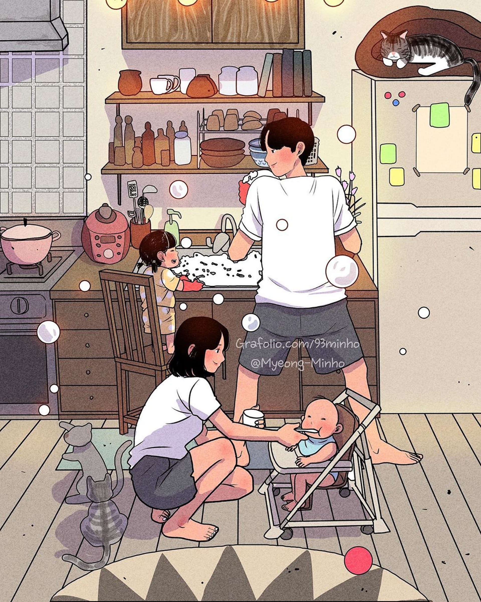 平淡日常的滿滿愛意! 韓國插畫家「平凡小夫妻家庭生活」超甜蜜:永遠把你放在心上~