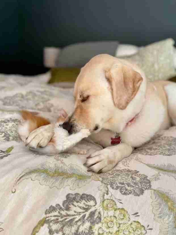 2020年06月20日這隻狗狗是天生的媽媽~美國加州女子Kendal Benken待在家期間想要當中途家庭,照顧那些需要幫助的貓咪、狗狗。她從動物收容所接回3隻小奶貓,沒想到家中的拉拉Truvy馬上進入了媽媽的角色,把小奶貓當成了自己的小孩。