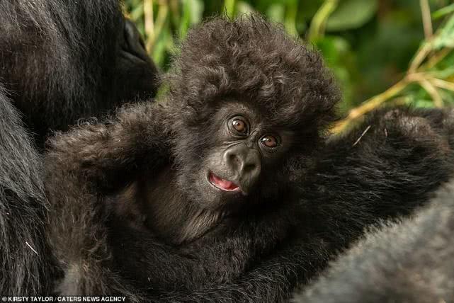 2020年06月21日髮型對一個人的形象有很大的影響,沒想到對動物也一樣。英國攝影師Kirsty Taylor到非洲盧安達的「Parc National des Volcans」國家公園拍攝時,遇到了一隻很可愛的野生大猩猩寶寶。這隻大猩猩寶寶有一頭濃密的捲髮,就像剛剛燙過一樣,看起來超可愛。