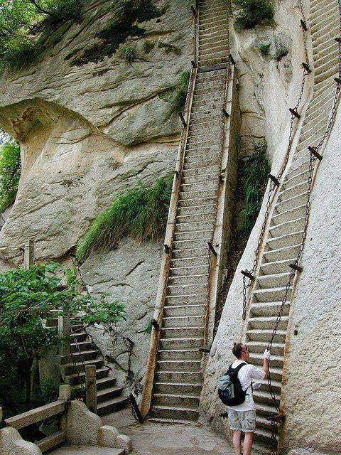 ▼在這裡爬山不僅考驗體力,還考驗膽量。