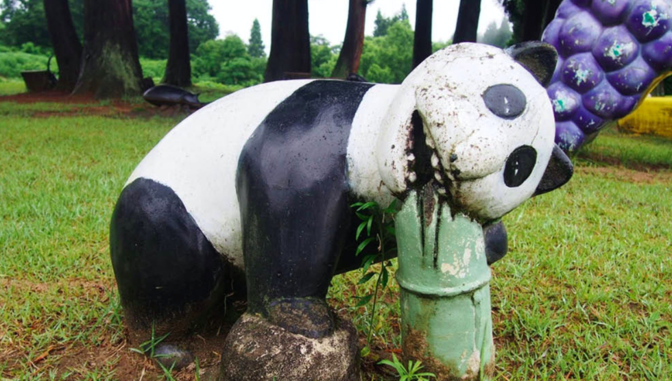 ▼新瀉縣川口運動公園:這隻熊貓的造型超可怕,不僅眼神陰森,脖子的角度還怪怪的,小朋友看到應該會被嚇到吧。